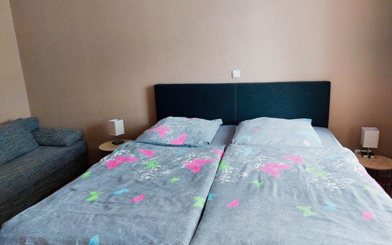 Die Wohnung verfügt über ein gemütliches Schlafzimmer, das mit einem komfortablen Doppelbett ausgestattet ist. Ideal für Paare oder Alleinreisende, die nach einem entspannten Schlaf suchen. Zusätzlich befindet sich ein Schlafsofa im Zimmer, das nicht nur als praktisches Zusatzbett dient, sondern auch zum entspannten Verweilen einlädt. Genießen Sie erholsame Nächte und wachen Sie erfrischt auf, bereit für neue Abenteuer in der Umgebung!